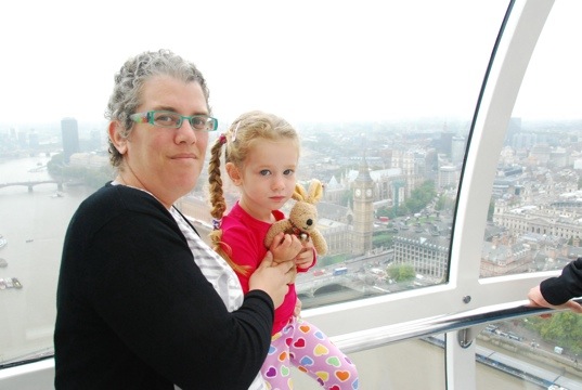 לגבי לונדון, באפריל האחרון, כשנודע לנו שאיריס עברה למעמד של גרורתית, איריס החליטה שניסע ללונדון בחגים, שניקח את דר למקומות האהובים עלינו בלונדון. אז טסנו, לפני ראש השנה, לשבוע בלונדון. ואיזה שבוע זה היה. דר מעולם לא נסעה בכל כך הרבה רכבות בחייה, אבל החליטה שהיא מעדיפה לנסוע במוניות הלונדונית. נכדה של סבתא שלה. היא נהנתה מאוד לבחור בגדים ומתנות בחנויות, לאכול המבורגר אצל גורדון רמזי, לשוט בסירה לגריניץ׳ ולראות את ״אמצע כדור הארץ״ כמו שהיא קראה לכדור שם, לבלות בלגולנד, לבחור צעצועים בהמליס וכמובן, לראות את ה׳בינגן׳ (ביג בן), אהוב ליבה. האויר שיצא מריאותיה כשראתה את השעון ביצ׳יאה מתחנת הרכבת בווסטמינסטר עדיין לא שב כולו לריאות. אה, וכמעט שכחתי, דר נהנתה מאוד לשוטט בארמון וינדזור, לראות את חילופי משמר המלכה ואת החדרים ולתהות מדוע המלכה לא מחכהבארמון ואיפה בכלל נמצאת הנסיכה קייט מידלטון. חוץ מזה היא נהנתה לעשות קניות בסלפריג׳ס ולאכול שם סושי מהמסוע ובין לבין היא עזרה לי לעצור את איריס מלקנות שטויות כשצעקה ״אמא את לא קונה כאן שום דבר!״. וכמובן, לשחק באייפונים והאייפד באפל סטור בקבנט גרדן ולעלות על הגלגל הענק בלונדון איי.