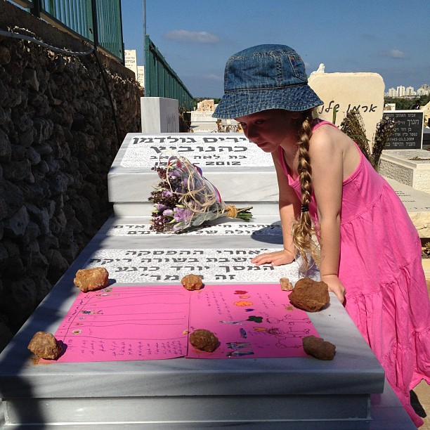 עד היום יש לנו טקס לפני ההליכה לבית הקברות, שהוא חשוב מאוד וקשור לדברים שהם בשליטת הילד – אנחנו נוסעים לחנות הפרחים או למשתלה, דר בוחרת פרחים בצבע שהיא אוהבת או רוצה להביא, היא בוחרת את הסרט לקשור את הזר, בחרנו גם אגרטל מיוחד. חשוב לתת לילד לבחור כמה שיותר דברים שהם בשליטתו. לפני בית הקברות אני שואל את דר אם היא רוצה להכין כרטיס או ציור להניח על הקבר, היא יכולה לבחור בובה או צעצוע להביא ולהניח על הקבר. הכל בסדר מבחינתי. לאורך הזמן היא יצרה פרחים ואגרטל מקרמיקה, ביקשה לבחור בובות של פיות להניח על הקבר, בחרה אבנים מיוחדות שמצאה בחוף הים או בטיולים, להניח על הקבר, לתת לה תחושה שזו המקום שלה, פחות קר ומנוכר ויותר אישי.