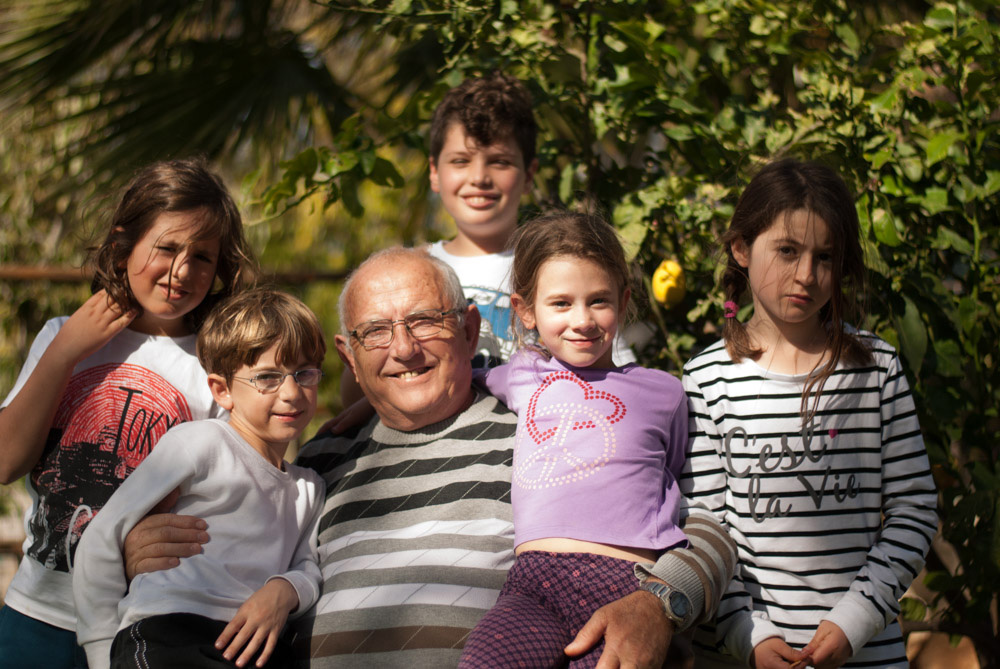 סבא זאב עם שלושה נכדים, ועוד שניים שאימצו אותו כסבא
