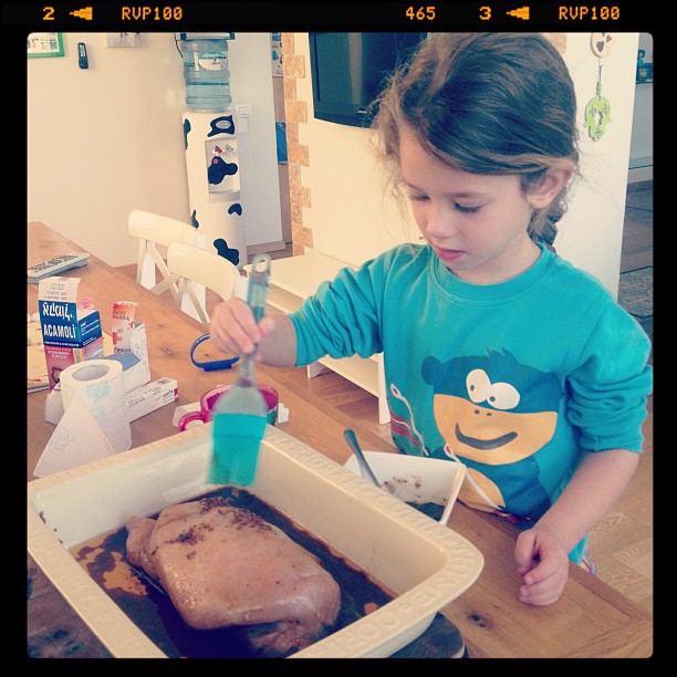 מורחים על החלק העליון של ההודו ליצור ציפוי. אפשר גם להוסיף לציפוי פלפל שחור גרוס או תבלינים אחרים כיד הדמיון היוצר.