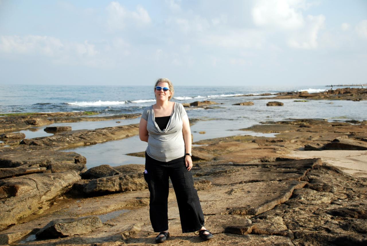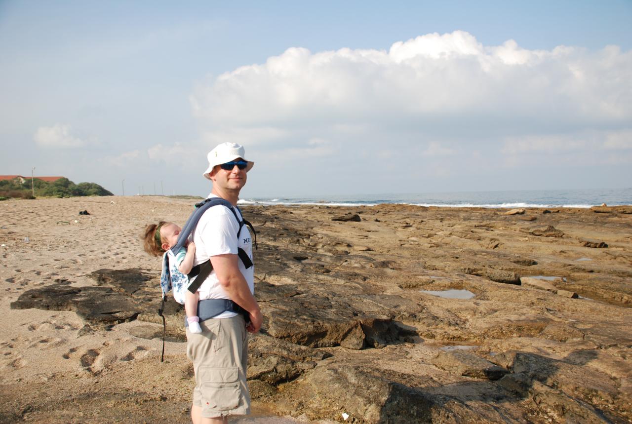 ביום שישי אחרי הצהרים דר ביקשה ללכת לחוף הים ביחד, כמו שעשינו אז, איריס, דר ואני. דר היתה על במנשא על הגב שלי, זה היה בוקר, ויצאנו לטייל על החוף הסלעי של שבי ציון. יש משהו כיפי בחוף הזה, תמיד מרגישים נורא לבד, למרות שיש שם אנשים. הסלעים נותנים למקום אוירה מיוחדת. לקחתי אותה, הושבתי אותה על הסלעים וסיפרתי לה על הטיול שעשינו ביחד.